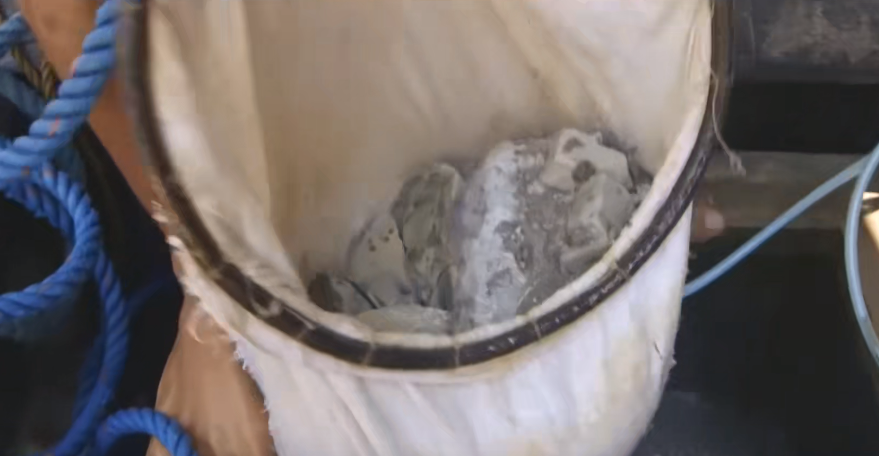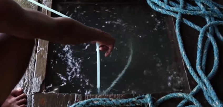 工人身上除了头上的护目镜,以及腰间的压缩空气管,没有任何专业的潜水装置,导致危险时常发生。