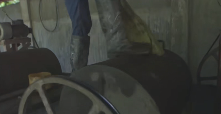 开采出的矿石被送到老板的私人工厂,先被放入球磨机,粉碎大块矿石,随后,用水淘洗这些石头粉末。