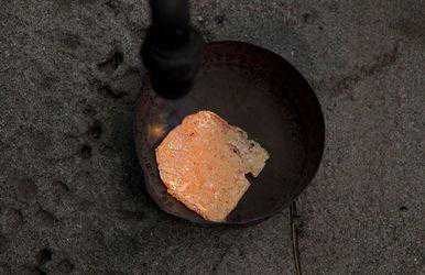 细小的石块在水的作用下被冲走,留下金子。但这还不够,接下来的一步至关重要,工人会把初选过的金沙放在一起,并倒入一些水银。