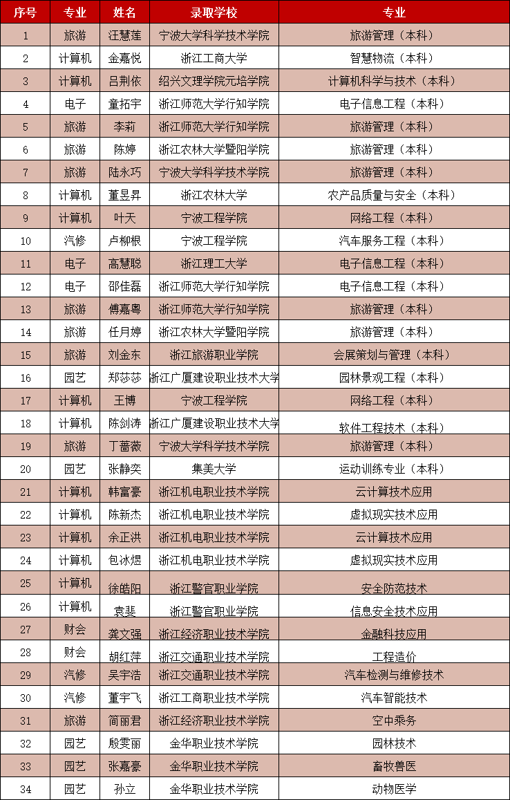 嘉善信息技术工程学校职教高考录取学生信息