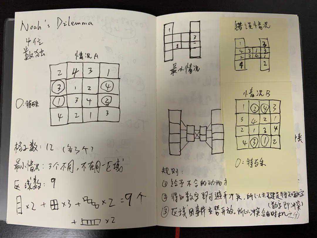 2021年:从数独到方舟,再到失败的原型时间回到2021年,在《空箱》发售后的各项工作告一段落后,我终于有了时间来思考下一款游戏要做什么。但由于《空箱》是我人生中所做的第一个原型,就直接发展成了完整的游戏,所以我对从“游戏想法”到“立项”的过程并不那么熟悉,而这造成的结果就是,我有很多想做的游戏,但无法决定要做哪一个。唯一确定的是,在刚刚结束了有着完整剧情的《空箱》的开发后,(至少下一个作品)我想做一款不需要去考虑剧情的游戏。而此时,《诺亚的困境》最初的想法已经出现。