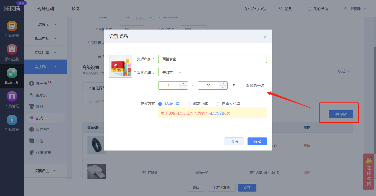 仅可添加实物奖品,每轮游戏中可添加多种奖品
