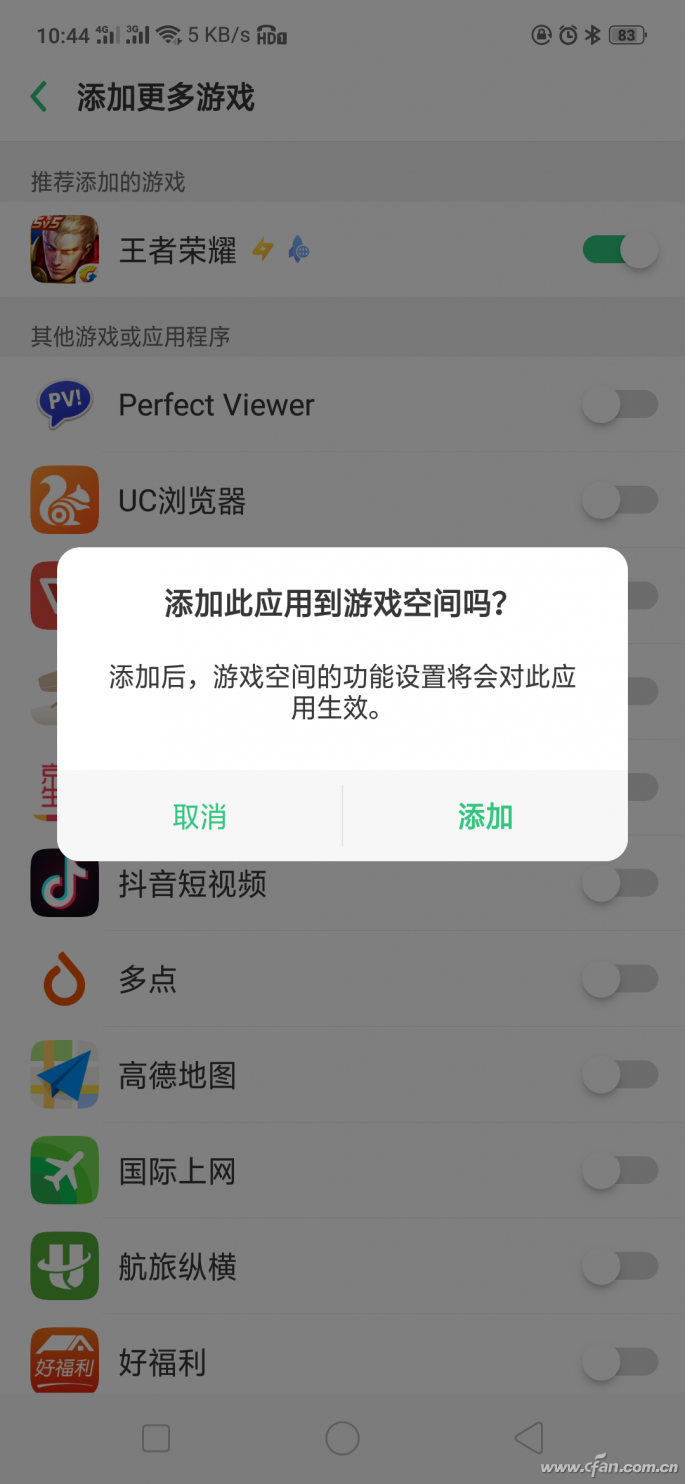 除了360手机以外,其他品牌的游戏模式也能参考本文的思路加以利用。比如OPPO手机主打的“游戏空间”(图6),同样支持添加非游戏类APP到“抽屉”,从而获得游戏专用的各种福利(图7)。