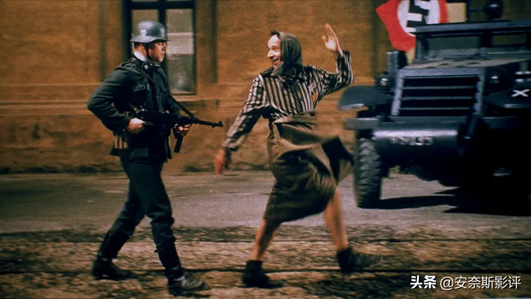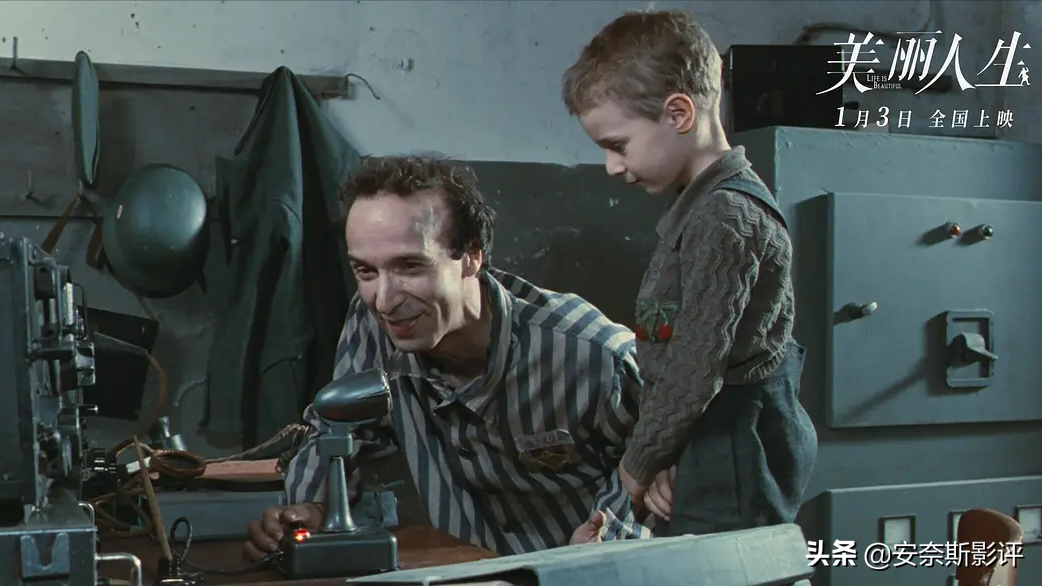 并且,在如此残酷的环境下,不同于其他人已经麻木的眼神,圭多将用他的实际行动告诉我们,他不仅可以为他的儿子撑起一片希望之天,也能为他自己,为他的妻子,在黑暗中传递希望,传递亲情,传递不变的爱。但黑暗仍在,危险更是无处不在,稍有不慎便会让他的儿子堕入黑暗,然后便是无法挽回的死亡。圭多只有更加谨慎才能保护好依旧天真活泼的儿子;才能在无尽的黑暗中抓住每一次机会,为他的妻子传递一丝丝希望。